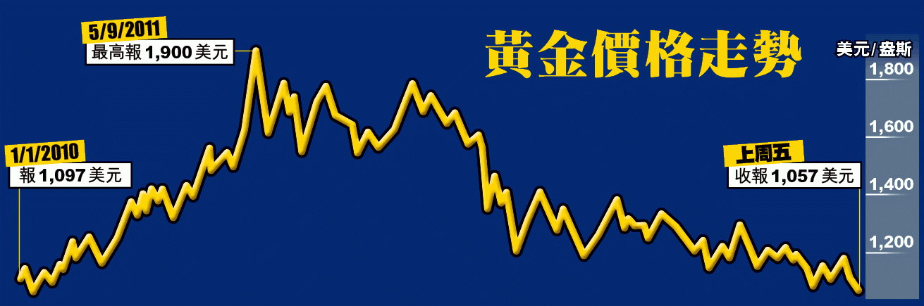 與2013年「搶金潮」相比,飾金牌價已下跌超過3,000元,當時牌價報每両14,450元,昨日飾金牌價為每両11,380元,跌幅逾20%。當年成功以「低價」搶購黃金的消費者,全部都坐上了「黃金艇」。