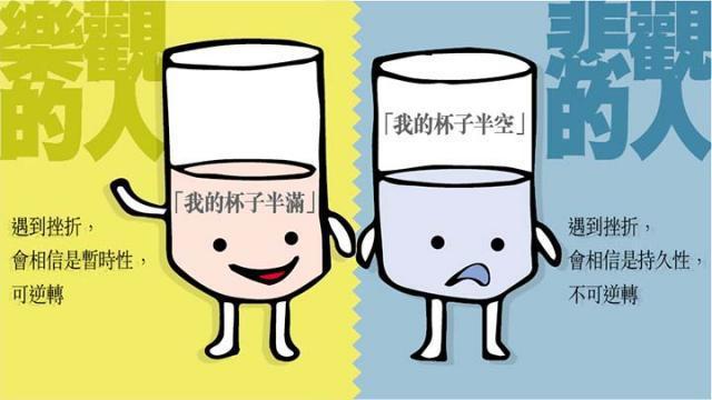 懂得樂觀的人會想可能性,學會堅持而不輕言放棄,等於樂觀的人經常看見半杯水就是半滿一樣,更重要的,就算杯裏不是半滿,只是10%的滿,他們也不會氣餒,把它看成是90%的空。當然,話得說回來,樂觀也別脫離現實,避免自欺欺人,白白浪費了一生。