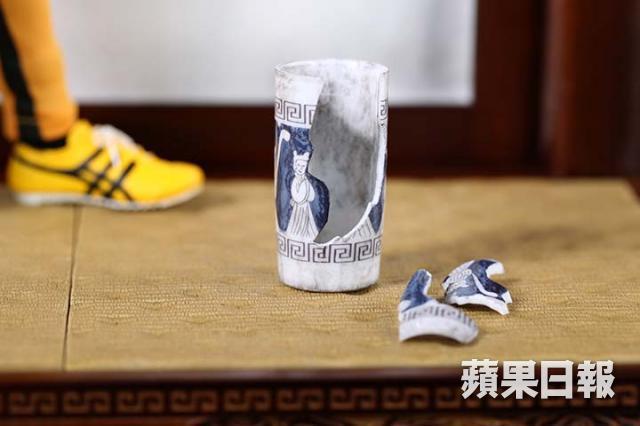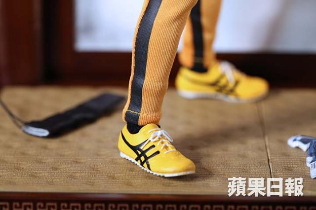 另外,今次記念版人偶賣點之一是配件,除了武器及不同手形外,更備有像真的破花瓶 沙包和場景佈置等,可玩性甚高,而周少康看到綠色的竹子更特別興奮:「這一支叫作Bamboo Whip竹鞭,這一支武器在死亡遊戲中只出現過一次,在之後的香港電影都沒再出現過,唯一是今次這支做得稍長了一點。」他又欣賞雙節棍和鞋也做得很好很真實,較不滿的反而是其戰衣的顏色不夠鮮黃,理應較接近鞋的黃色而非現在的橙黃,質料上亦不太像電影中的戰衣。「胸口如能加上一個腳印,就是電影中渣巴踢的一腳,我會更開心!」周少康作為超級粉絲,對偶像相關的事果然特別高要求,雖然他對今次人偶不算完全滿意,但亦覺得製作上算是有心思,作為擺設已屬不俗之作。而記者亦特別欣賞其場景造形相當具質感,令人偶的整體性大大提高,加上重量級兼精美包裝,也算是值得收藏的佳品。