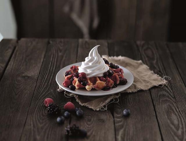 雜莓新地窩夫根據傳統比利時配方製作,焦糖味窩夫外脆內軟頗吸引。