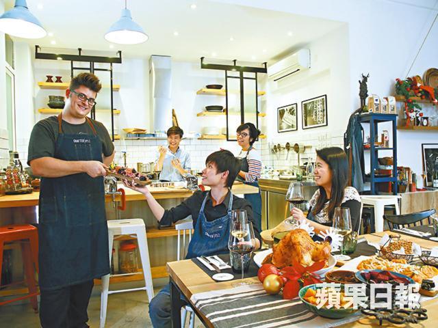 有Chef Nolan坐鎮,菜式可以複雜一點,並適合多人合作炮製,「做了廚師17年,我腦海中有千千萬萬道菜式構想,但我喜歡互動,所以派對前我會邀請搞手來喝杯咖啡,大家傾談一下細節及菜式。」他表示不少客人來過一次就愛上這裏,無論生日、bridal shower或baby shower,Chef Nolan都會度身訂做餐單。這次我們幾位飲食籽以聖誕為題來一次初體驗,試做意大利雲吞、聖誕曲奇及以傳統法式方法煮時令菜蔬,配合聖誕火雞、各式芝士及風乾火雞等,過程相當歡樂,而且有大廚在旁,味道亦不會失手,最多只會出現意大利雲吞爆開或熊仔曲奇斷頭的搞笑事件。提提大家,場地不提供任何酒精飲品,但絕對歡迎自備靚酒,且不設開瓶費,大家識做啦。