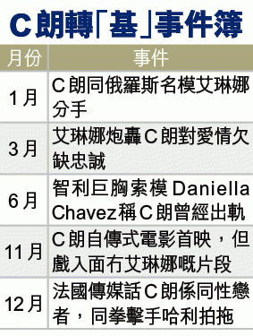 C朗同西班牙電視台咁講:「成季嚟睇,我嘅表現喺水準以下,但大家要體諒,我自己有啲私人問題。」男人嘅問題不外乎錢同女人,C朗啲錢多到使唔晒,當然不成問題,咁應該同女人有關。呀!我求大俠要修正,可能係關男人事。早幾日有間法國電視台爆料,話C朗同摩洛哥嘅超重量級拳擊手巴特哈利之間唔單止係巴打咁簡單,仲有hehe關係,報道更加話C朗每次操練完就急急腳趕去機場,飛去摩洛哥搵佢,每星期都去三、四次。之前哈利放過佢同C朗啲合照上社交網站,感覺都幾hehe㗎,哈利仲留言話佢哋啱啱結婚。我求大俠嗰陣仲以為係講笑,但𠵱家咁睇話唔定係真。
