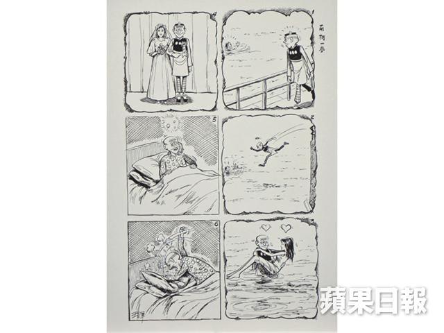 展覽亦有王澤繪畫的《老夫子》手稿,包括老夫子彩色封面,以及數十幅四格、六格黑白漫畫,正如王澤所說,在牆上閱讀原稿,也有一種不同體驗。雖然一幅老夫子故事只需三數小時便完成,但對65歲的王澤而言,卻是個小挑戰。「畫畫時要戴着老花眼鏡畫,燈光也刺眼,畫得很傷神。」過程雖吃力,但看着展覽的成果,他卻開心滿意得像個小孩。他說父親對他影響最大的,是那顆童心,是一種堅持創作的精神。