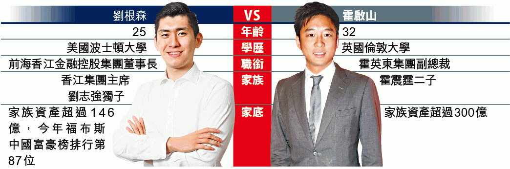 超蓮新歡劉根森背景殊不簡單,現年25歲的他,畢業於美國波士頓大學,被內地傳媒形容為高富帥的「創二代」筍盤,外形青靚白淨,家底豐厚,其父劉志強是以房地產及家居生意起家的香江集團主席,母親翟美卿更是全國政協,故在外形、學歷及家底與超蓮都門當戶對。劉家更是福布斯中國富豪榜常客,今年就以資產約146億排列87位。劉根森被父母刻意栽培做接班人,他今年跟母親到北京「兩會」觀摩,已擔任不少職務,包括深圳政協、深圳市同心青委蕋主席、中國僑聯青委會副會長,現幫屋企打理家族生意,出任前海香江金融控股集團董事長。