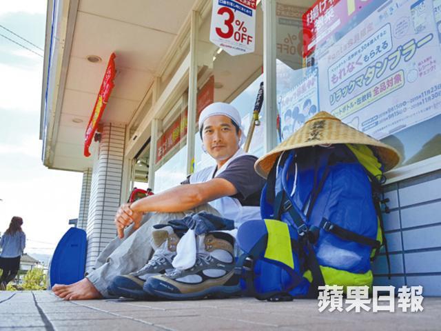 71歲的板野先生已是第四次步行四國遍路,他教Keith用路邊野生蘆薈治腳上水泡,十分有效。