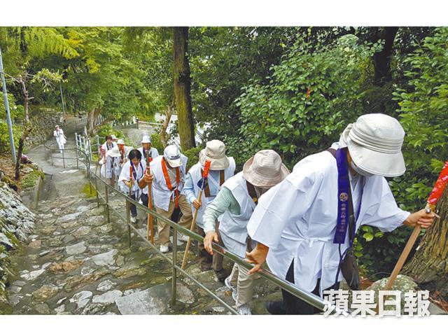 在前往愛媛縣龍光寺的山路,遍路者整齊排隊上斜。