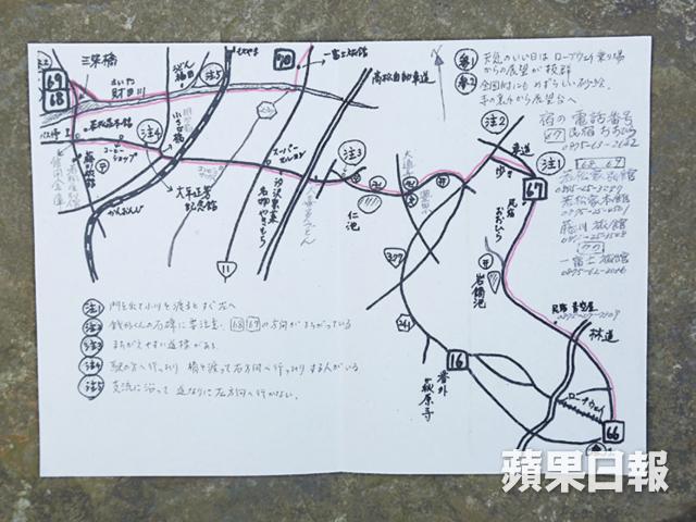 在愛媛縣一間民宿,老闆送上仔細的手繪地圖,指引Keith如何前往翌日目的地──香川縣的雲邊寺。