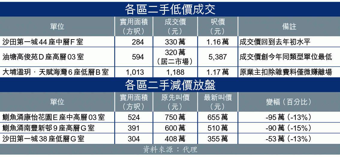 另外,美聯黃錦瀚指,沙田第一城一個38座低層G室單位,實用面積304方呎,業主起初叫價達408萬元,惟加息後業主態度隨之軟化,將單位急劈至355萬元放售,減幅13%。