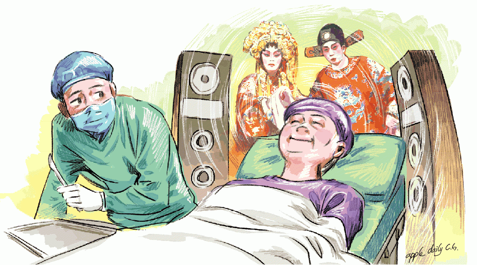 【本報訊】入院做手術,面對陌生手術室環境,加上未知治療結果,病人不安是人之常情。明愛醫院近年收集病人意見,進行一系列手術室改善措施,當中最特別是在手術室播放音樂,讓病人在麻醉期間能放鬆心情,除了一般輕音樂,更特別為長者準備《帝女花》等粵曲,病人反應正面。
