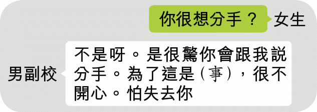 字裏行間可見,女生疑原居深圳,而男副校已組家庭及育有一子。為了這地下情,他特意購買儲值卡,用新電話號碼與女生對話,指可稱是「公務電話」。不過兩人為男副校家室問題經常爭拗,更談及分手;最新一段短訊,男副校以「千字文」斥女方要脅公開戀情並非愛的表現,批評她對金錢渴望大,更爆女生與他親熱時說:「你出未呀!」令他感到難過。