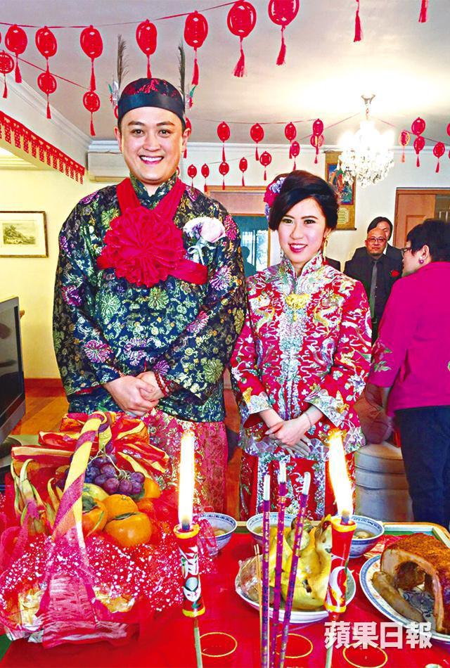 童星出身、李家鼎與前妻施明所生的35歲大孖李泳漢,昨日大個仔娶老婆,跟拍拖兩年圈外女友嚴佩鈺(Conny)奉子成婚,雙喜臨門。泳漢先於上午穿上中國傳統結婚禮服接新娘,其間泳漢跪地跟老婆咀嘴,之後乘花車時又如接吻魚般錫錫,愛得相當癡纏。
