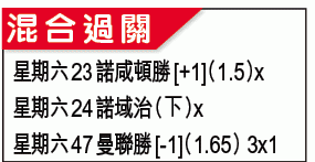 其餘英足盃心水,較看好諾域治及諾咸頓可藉主場之利保不敗。諾域治的對手雖然是曼城,但藍月亮近五場僅兩勝,又續缺隊長兼後衞高柏尼,文加拉又上陣成疑,後防或有漏洞。諾域治近四仗贏三仗,又試過賽和阿仙奴,受讓半/一下盤可博。諾咸頓雖是乙組仔,但近10場九勝,今迎升上英冠後明顯不夠班的米爾頓凱恩斯或能爆冷,吼[+1]「主勝」。文:吾中