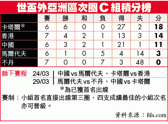 【綜合中國外電】中國足球代表隊在世盃外兩遭港足逼和,世盃外出線機會名存實亡;中國足協昨日宣佈,與國足教練佩連解約,重新招聘主帥。