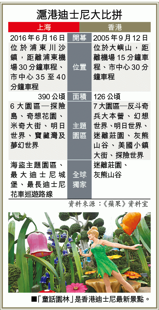 【本報訊】上海迪士尼樂園將於6月16日開幕,並舉辦為期數日的盛大開幕慶典,預計今年將有逾千萬人次入園。坐擁六大主題園區及兩座主題酒店的上海迪士尼,面積僅次於美國佛羅里達州及法國巴黎迪士尼。消息一出,引起中港兩地網民熱議,不少內地網民表現興奮,直言:「這回沒人去香港了吧?」「大家以後不用去全球最小的迪士尼啦!」香港網民以「太好了,以後香港可以安靜下來」等言論作回應。