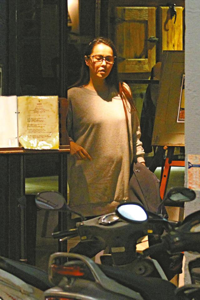 前日見到伊能靜身形明顯脹大了不少,面形亦較之前圓潤,跟友人傾偈時亦不自覺輕撫着肚皮,身旁放着大袋小袋,相信是跟友人剛剛濕平完畢,到咖啡店小休。坐了大概半個多小時後她們各自離開,懷有身孕的伊能靜起身時小心翼翼,當她站直身子時大肚更加明顯,看來至少已有4個多月的身孕。伊能靜手上挽着一個「Armani Junior」的童裝紙袋,相信是為肚中BB所買,作為高齡產婦的她,在街上行起來份外小心翼翼,之後她拿出手提電話講了幾句,似乎是安排私家車接送。