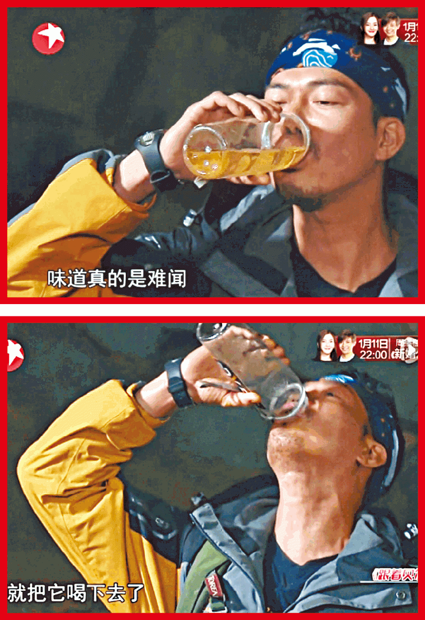 搵食艱難!香港市場日漸萎縮,藝人紛紛北上賺人仔掘金,現年48歲的謝天華離開無綫後自力更生,接拍內地劇及參加真人騷賺奶粉錢,然而,天華拍攝東方衛視野外求生節目《跟着貝爾去冒險》,竟然大犧牲對着鏡頭飲尿,十分重口味,不少觀眾睇到惡心難頂,洪欣則力挺有份飲尿的老公張丹峰:「我覺得佢好叻!」