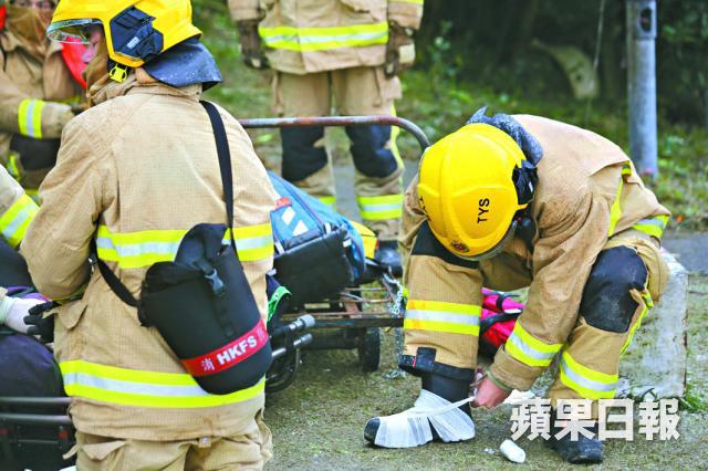 但消防在救人時,因為擔心用擔架抬傷者沿斜路落山會跣倒增加危險,決定棄用擔架,用膠墊鋪在地上,將傷者放在上面拖行落山,再送院救治。