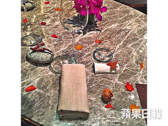 來到餐廳一坐下,筆者發現餐枱上好像有幅風景畫,有些樹葉、核桃殼及樹枝裝飾。侍應生說餐枱上所有東西(當然除了餐具及石頭之外)都是可以食用的,餐枱上的刀叉架也是廚師們用心地將牛骨削磨而製成。可見餐廳所有東西都是創意可嘉,務求達至盡善盡美。