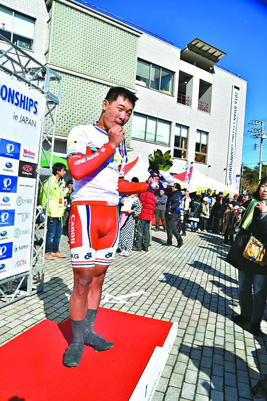 阿樂昨日完成公路賽後,旋即起程前往伊豆修善寺的日本場地單車中心,準備明天展開的場地單車賽,他說:「這兩面金牌為我在2016年開了個好頭,更給我多一支強心針。」這面金牌可謂得來不易,由於伊豆島上颳起大風,氣溫又低至攝氏三至四度,原定全長166公里的男子公路單車賽,大會前天宣佈改短至151公里,至昨日比賽途中更臨時縮短至119公里。
