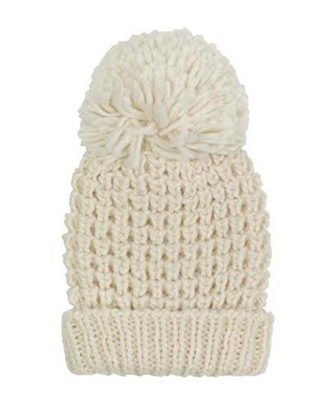 白色冷帽同樣易襯,頭頂仲有大大粒毛冷球,夠晒可愛!Accessorize beanie $240(c)