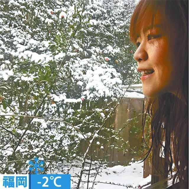 龍小菌湊熱鬧,在日本福岡見綿綿雪景拍照放上微博,高呼好凍。