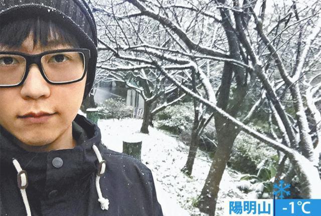五月天阿信昨日走訪低至-1℃的陽明山。