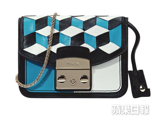 意牌Furla多OL客,也有不少young artists捧場,熱賣款Metropolis設計小巧,鏈條式肩帶時尚、簡單、襟興,新季有撞色織皮款,拼出幾何圖案。