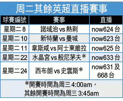 剛有領隊比歷連尼宣佈於季後離隊的「藍月亮」曼城,是目前英超前四球隊中,作客表現最差的一隊,在周二的聯賽作客到要搶分護級的新特蘭時,「讓球」曼城要讓一球實在嫌多,寧博「黑貓」下盤。