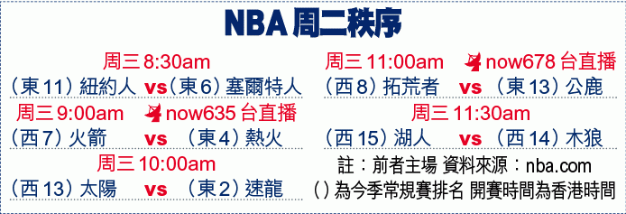 湖人嘅戰績唔多理想,但同樣坐落於加州嘅勇士就越戰越勇;佢哋喺同日以116:95擊敗紐約人,豪取七連勝。而今場拎到「大三元」20分10助攻10籃板嘅祖蒙特格連(Draymond Green),更加追平咗名人堂成員高拿(Tom Gola)喺隊史單季拎到九次「大三元」嘅紀錄。