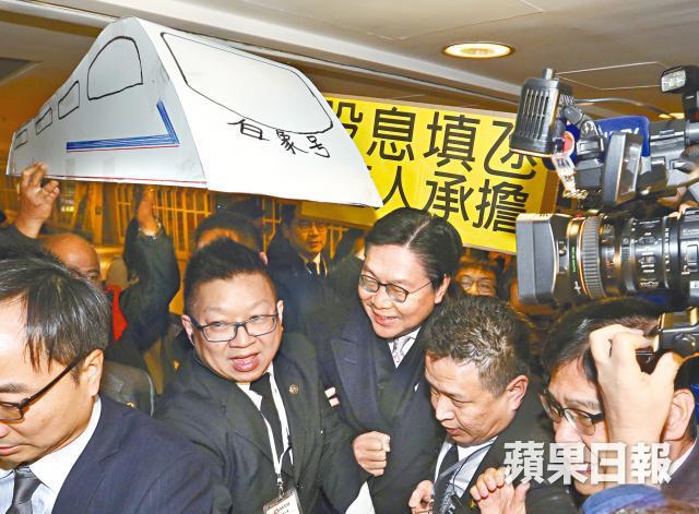 港鐵昨日召開特別股東大會,為填氹方案進行表決。社民連、新民主同盟、土地正義聯盟等團體到場抗議,批評港鐵借錢填氹不智,高鐵一地兩檢也損害一國兩制,呼籲股東投反對票。港鐵最大股東香港政府因涉關連交易未能參與投票,由佔24.3%股權的獨立股東決定是否接受填氹方案。早前獨立財務顧問已建議小股東接受填氹方案,加上投票票數按出席股東持股量計算,最終在大戶撐場下,方案以99.8%贊成票通過。