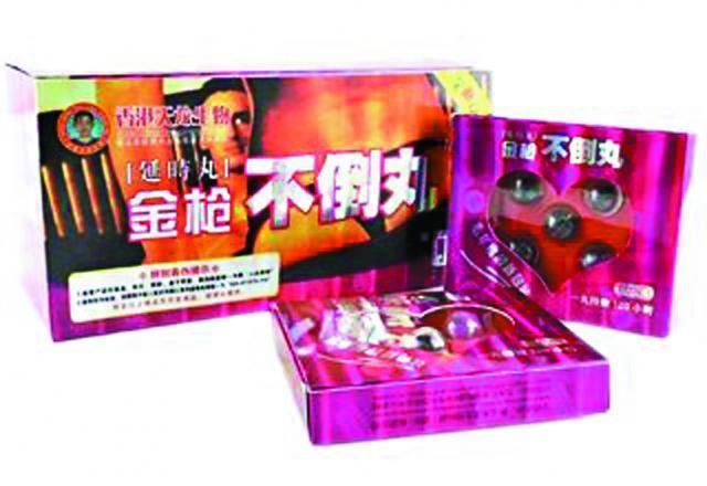 【本報訊】台灣衞福部昨公佈一批中藥摻西藥檢驗不合格產品,其中一款製造地為香港的壯陽藥「金槍不倒丸」,宣稱一粒丸可持效120小時,但檢驗結果顯示摻入西藥氯黴素和威而鋼(偉哥)成份,服用後或會造成疼痛性勃起逾4小時。《蘋果》記者昨走訪本港多間藥坊,均不見該產品出售。