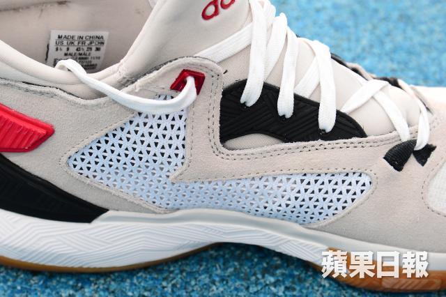 先說外形,個人感覺D Lillard 2跟其主人一樣,雖沒有一眼就能完全吸引注意的超凡魅力,但卻有令人慢慢着迷的特質。新鞋設計走平實風,但鞋上卻滿佈細節,如鞋底上的"Oak"、"Land"(Oakland是Lillard的故鄉)及其他有關其成長的文字圖案。記者特別喜歡白色一款,鞋面暗紋TECHFIT夠漂亮之外,麂皮細節配上黃色生膠底,令新鞋有點與別不同的復古和潮流感,即使着來出街亦相當易襯。另外,記者早前在台灣看過,香港尚未推出的紫粉紅配色Aurora Borealis北極光系列版亦非常搶眼精彩。