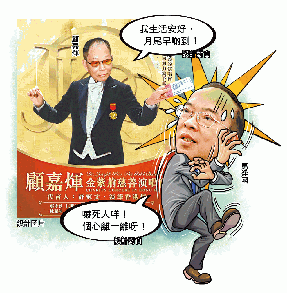 大家知唔知道立法會有個議員叫做馬逢國,係代表體育、演藝、文化及出版界㗎呢?唔知唔緊要,只要知道佢健在就得,點知呢位代表演藝文化嘅議員,卻唔知道界別內大師級人馬嘅狀態。噚日喺立法會辯論「網絡23條」時,馬竟然話著名作曲家顧嘉煇同填詞人黃霑一樣「離開咗」大家,但明明煇哥月底將舉行慈善演唱會,難怪網民話要離開嘅應該係馬逢國囉!