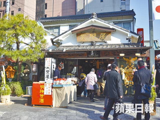 小店的招牌食品是自家天然釀造的甘酒,記者採訪當日正值日本新年,不少民眾在神社參拜過後都會買溫熱的甘酒,站在店前飲用。史子女士說:「甘酒用上米和米麴發酵而成,沒有酒精成份,甚至有驅寒作用,小孩到老人也可享用,不少老人家會進來放下行李,行斜路去參拜後再回來喝酒及休息,迎接新一年開始。」