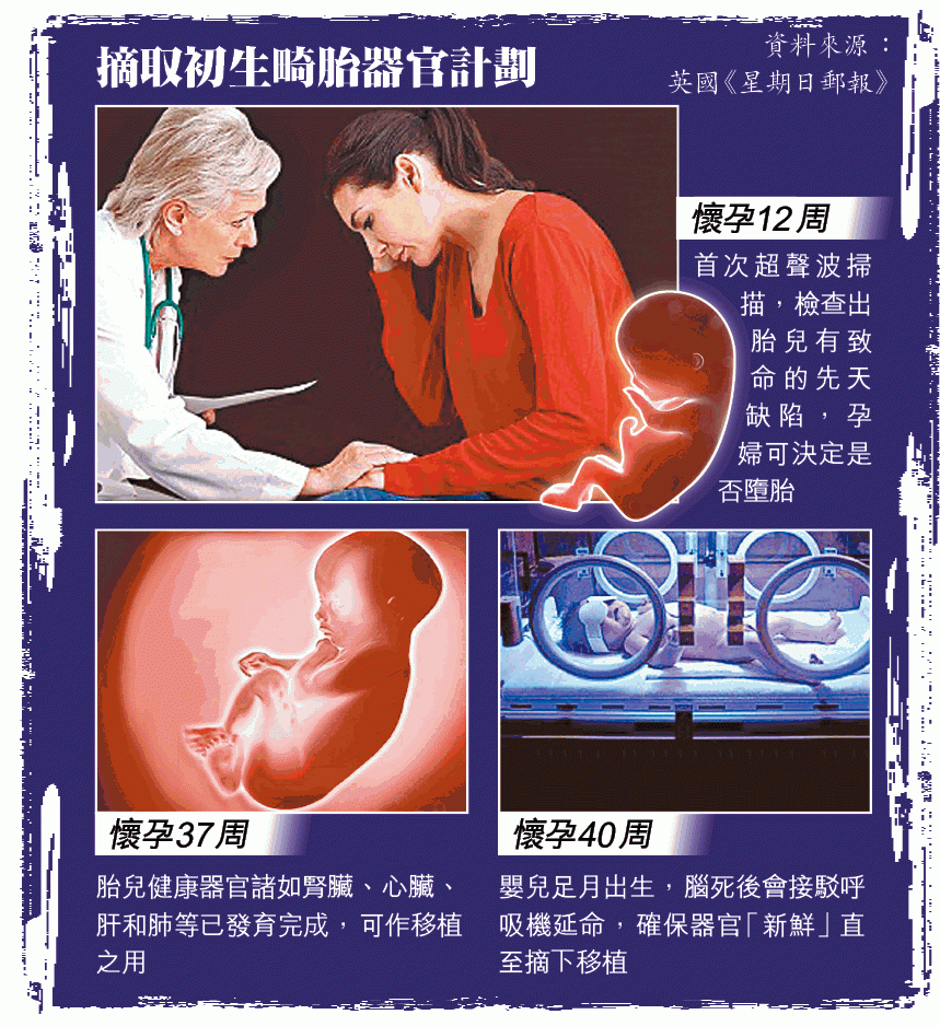 嬰兒不幸地因嚴重先天性缺陷夭折,做父母的心痛不已,很少會想及捐贈器官遺愛人間。英國國民保健服務(NHS)正研究幫助決定繼續懷問題胎兒的孕婦,在嬰兒夭折後捐出已發育完全的器官,支持者認為有助大幅增加器官捐贈者數目,但反對者認為做法似將嬰兒貶低成「備用零件」,易令公眾對器官捐贈反感。