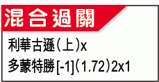 多蒙特於主場出擊,實在不宜跟他們作對,信他們周日可於德甲輕取來訪的緬恩斯,直取「讓球主客和」[-1]「主勝」。(球賽編號:星期日44;now672、有線61及201台明日0:30am直播)