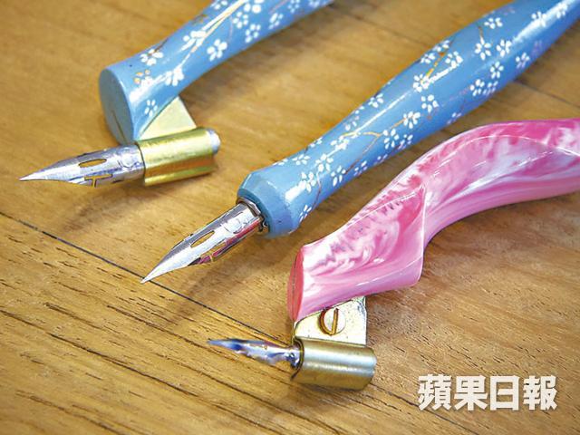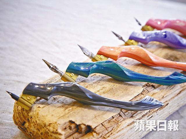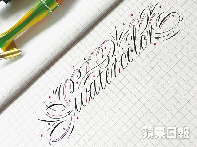 儘管你不喜歡寫字,英文字卻是無可避免接觸的東西,即使打開電腦也有繁多英文字形任你揀,總有一些字款是你喜歡的。各有特色的英文字由墨水筆來演繹,魅力頓時倍增,從社交平台看到英文書法的字體,總會令人心癢一嘗。由兩年前初接觸、九個月前正式找老師學,直至近幾個月開始初執教鞭教授英文書法的梁麒壁(Kirby),也是因為朋友學、覺得靚,好奇心驅使下發掘了這興趣。曾在香港上堂,九個月前跟丈夫公幹到紐約,Kirby找到人生第一個真正的老師、著名書法家Eleanor Winters,「她令我更加投入,我也不懂為何,跟她學習後,就如着魔一樣愛上,弄得如此下場。」所謂下場,就是買到放滿枱的一大堆墨水筆桿和筆嘴,「這只是我家中的一小部份。」她的資歷不是最深,但肯定是儲物最狂的一個,相信她是全港最多書法家(penman)限量手製墨水筆的人,支支不同圖案形狀的墨水筆十分吸引,價錢及數量也相當驚人,除了出自美國製筆師Unique Obliques、加拿大夫妻檔Heather Victoria Held & Chris Held,還有早前在網絡上極紅、為不少名牌代筆的美國Jake Weidmann。「因為全部人手製,所以是不定時不定量地放上網賣,要買到心頭好就要鬥快搶。不過其實學書法,這些統統也不用買,一支筆平與貴的分別,少到你不會察覺,好明顯只是我喜歡買文具。」