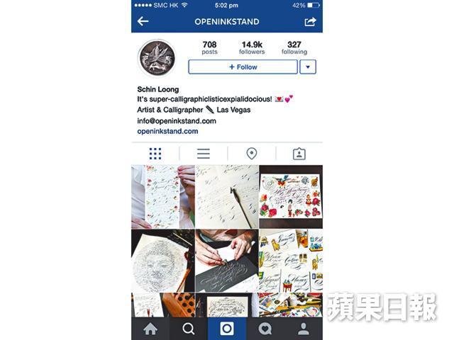 Kirby常看instagram“Open Ink Stand”,獲取英文書法的資訊。