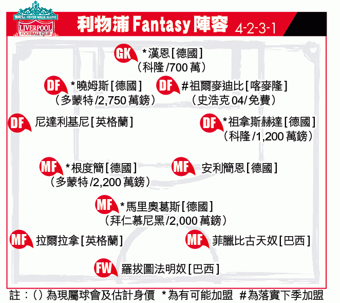 今季雖然仲有大概兩個月先完,不過利物浦領隊高路普已為下季做準備,消息話佢好有信心以割引價嘅2,000萬鎊(約2.2億港元),喺拜仁慕尼黑簽入由佢一手提攜嘅德國球星馬里奧葛斯;若然真係成事,呢對昔日嘅「蜜蜂兵團」師徒,將會喺晏菲路重逢,再次合力打江山。