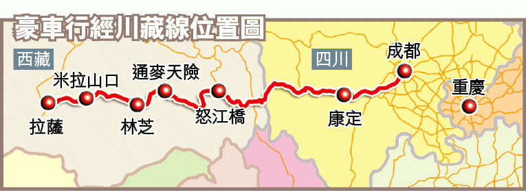 據悉該豪車隊上月15日從浙江出發,3日後抵達四川成都,其後再沿318國道自駕遊前往西藏拉薩。由於這「川藏線」有一半以上的路,都是在峽谷中和山脊上穿行,爛路處處更要駕車過溪涉水,因此對車輛的越野能力要求極高,沿路兩旁更可見不少被廢棄的車輛。