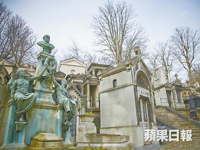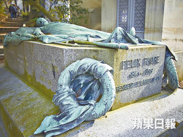 當你在墓地裏徜徉,就像走在安靜的古城。看到姓氏不同、年齡相差廿載的二人合葬一墓,我會想他們是否伴侶關係?詩人Guillaume Apollinaire在墓台上鐫刻了一首詩,其中一句是「我將含笑而死」。接着,法國第六任總統Felix Faure出現在我眼前,他最為人津津樂道的,莫過於轟烈的死法。據說1899年他在辦公室接受情婦口交時心臟病發猝死,故被好事者冠以「馬上風總統」之名,揶揄他做鬼也風流。