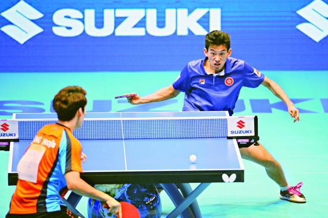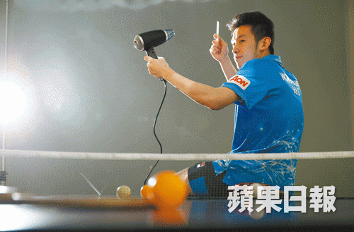 坐在乒乓球枱上吹着頭的黃鎮廷,是90後香港土生土長乒壇一哥,兩年多前剪了這個All Back後,鎮廷說走運到現在,髮型也跟「有進無退」的打法同屬乒壇異數,但無損他朝里奧獎牌進發的信心。