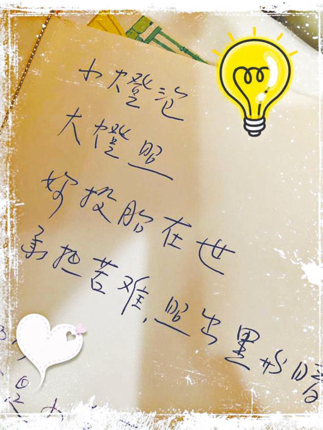 •小燈泡媽媽,欣賞你的堅強、正面、積極思維,繼續努力向前走。
