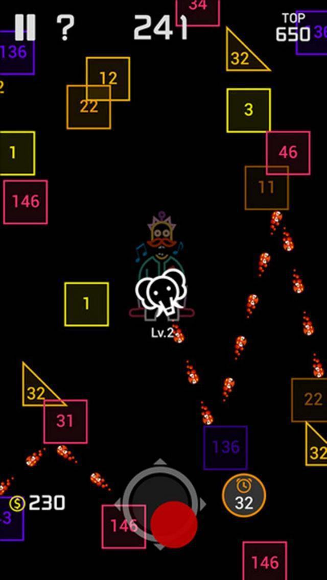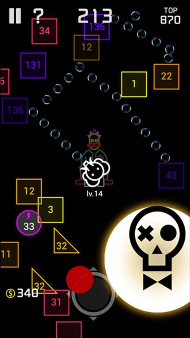 基本玩法就是這樣了,隨著升級過關,磚塊靠近的速度會愈來愈快、難度也愈來愈高,非常刺激。另有使用道具、時間停止等玩法。以小品遊戲來說,內容算是很豐富的啦。