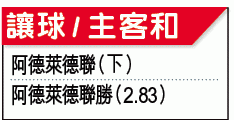 「讓球」阿聯受讓平/半,論狀態他們好過有主場之利的墨城,加上陣容完整,兼且近年作客到墨城的成績不俗,六場比賽取得三勝一和兩負,故此下盤值博,並可兼顧2.83倍的客W。波膽方面,墨城今季於常規賽攻入了63球失42球,明顯是攻強守弱,宜博阿聯贏3:2或4:2。