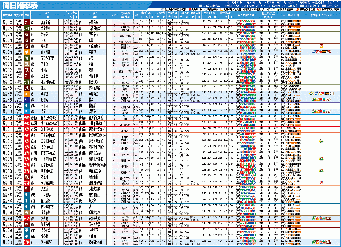 周日賠率表
