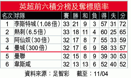 雲高爾話仲可以爭前四,數字上確係仲有機嘅;不過有一點可以肯定嘅係,曼聯今季英超已經緣盡冠軍,輸畀熱刺之後數字上已經冇可能追上榜首李斯特城。李城再贏三場就可以提早奪冠,第三場波就喺五月一號作客曼聯,到時紅魔會喺地頭見證李城封王,定係確定無緣前四?
