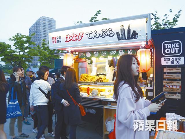 作為頭炮活動的漢江公園夜市,逢周五、六舉行,每晚30輛美食餐車各有特色,旁邊更有70檔小攤位,年輕人擺賣可愛的手作小物,填飽肚子逛逛有助消化轉頭再食,夜幕低垂後有live band show為現場炒熱氣氛,睇星星睇到悶又可以在室外影院睇戲,一應俱全。夜市的主角當然是人龍不斷的food truck,擺賣的不是隨街可見的魚糕串及炒年糕,而是高質又抵食的心機小吃,鹹點甜點齊備,除了韓式炸串和意大利飯炒年糕外,更有900度焗薄餅、$65炭燒頂級美國牛、長達50cm情人專用西班牙甜版油炸鬼churros、當造水果crêpe pizza等,一晚時間絕對吃不完。記者直擊夜市實況,由天光排隊到天黑,挑選出六款必試美食,附上試食報告。