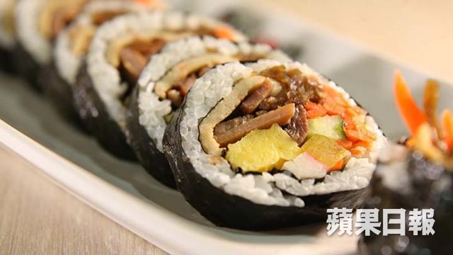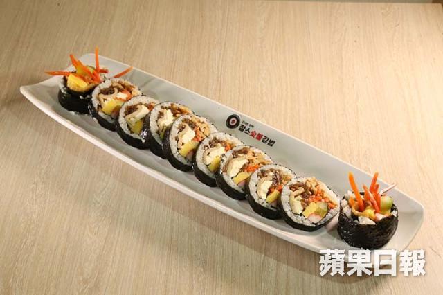 這家的紫菜包飯,光是大小已是別家的兩倍,除了蔬菜絲,醃蘿蔔,竟然還有魚糕。店內主打炭燒豬肉紫菜包飯,味道帶回甘,而且很清新。雖然紫菜包飯超大件,但老闆孫振赫就堅持要讓客人一口吃完一整件包飯,說是這樣才能吃到所有食材的味道。如果你不依指示做,老闆可能會親自過來餵你吃啊。