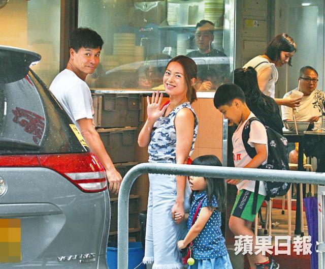 【大坑】郭晉安和老婆歐倩怡及一對子女昨日趁周末享受家庭樂,一家四口在大坑一間茶餐廳嘆下午茶,大約個多小時後,一家用完餐準備離開時,外面突然傾盆大雨,郭晉安一家惟有繼續留在食肆避雨,約半個小時後才可以離開。